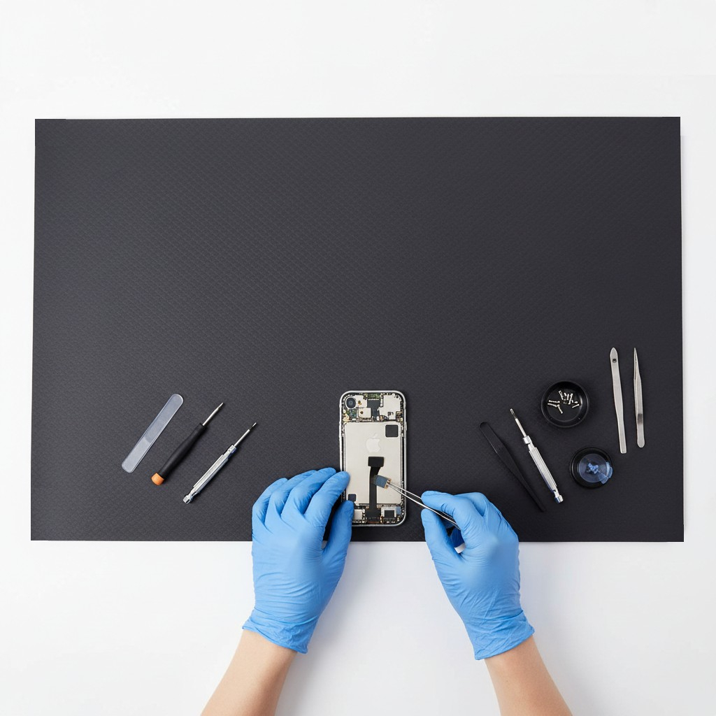 Suprafata antiderapanta previne alunecarea obiectelor, oferind stabilitate si protectie in timpul lucrului sau al prezentarii.