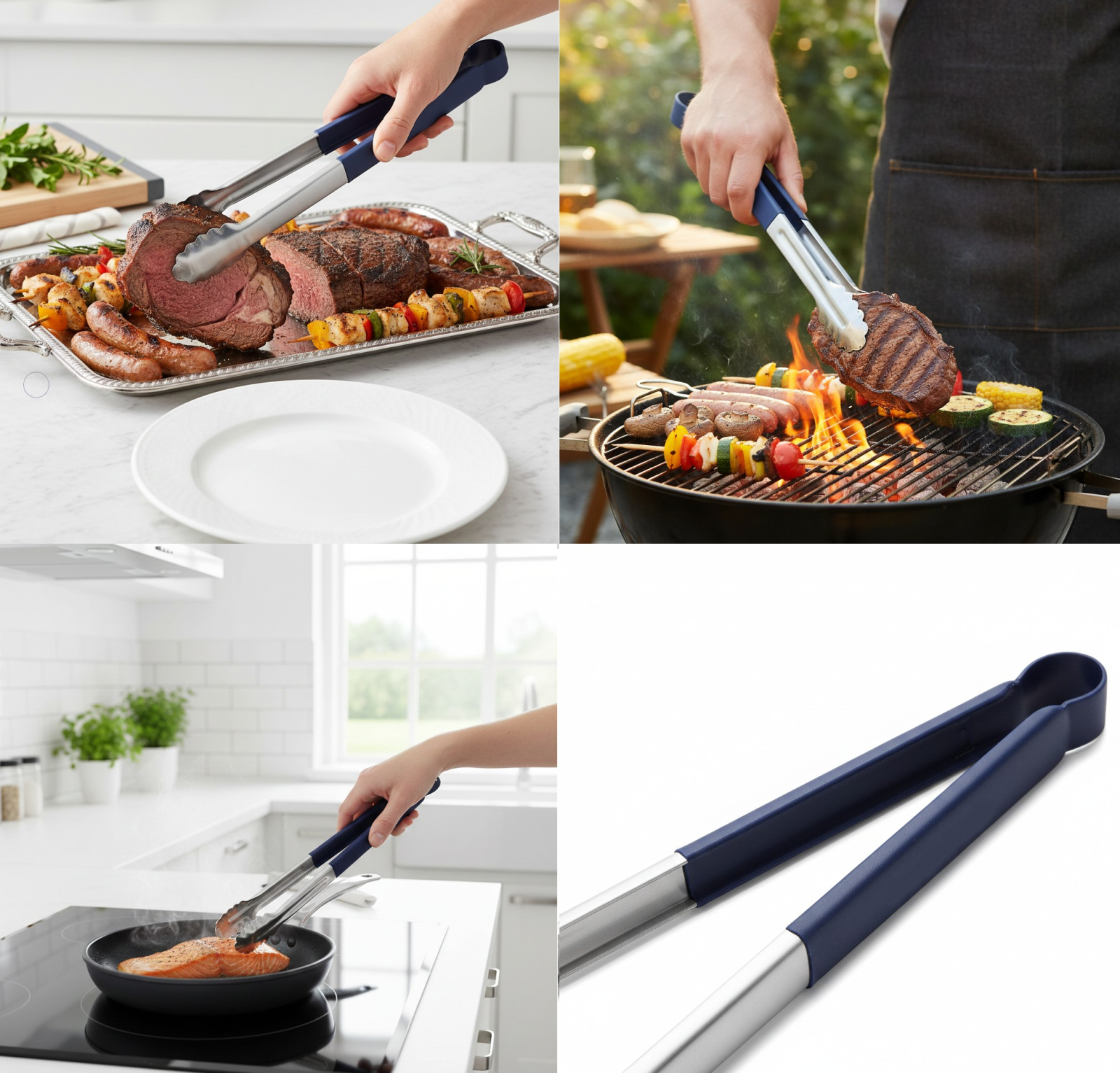 Cleste servire este fabricat din otel inoxidabil si are un maner din silicon pentru o priza confortabila si sigura. Acest cleste este ideal pentru servirea diferitelor feluri de mancare, precum legume, carne sau peste.