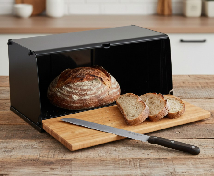 Conceputa pentru pastrarea painii in conditii optime, mentinand prospetimea pentru o perioada mai lunga. Tocatorul integrat ofera un plus de functionalitate, permitand taierea usoara si curata a painii direct pe capac. Designul practic ajuta la economisirea spatiului si la mentinerea ordinii in bucatarie.