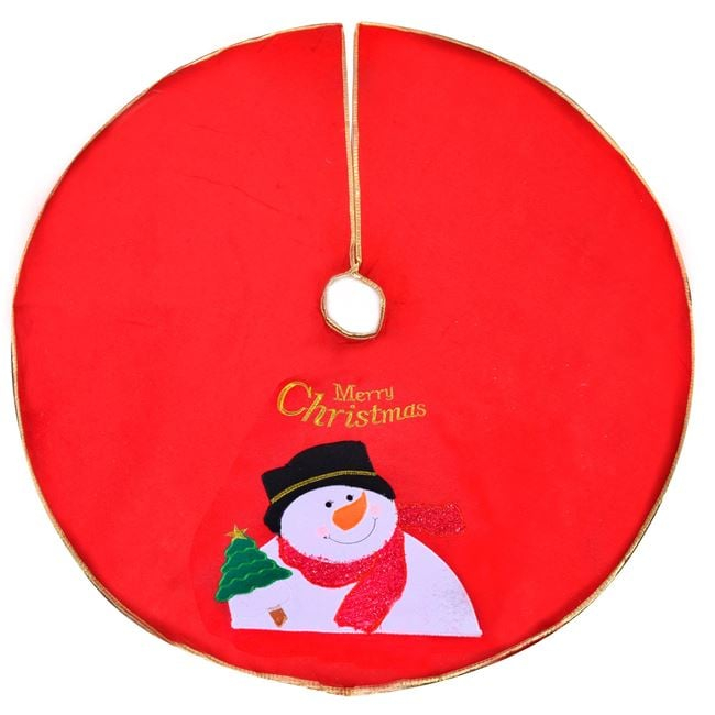 Covorasul pentru brad este de culoare rosie si are un design vesel cu un om de zapada. Diametrul sau este de 106 cm, oferind o baza ampla pentru bradul de Craciun. Acest covoras adauga o nota de magie si festin la decoratiunile de sarbatori, fiind perfect pentru a completa atmosfera unei case impodobite. Ideal pentru a proteja podeaua si pentru a crea un fundal frumos pentru cadouri si alte decoratiuni de Craciun.