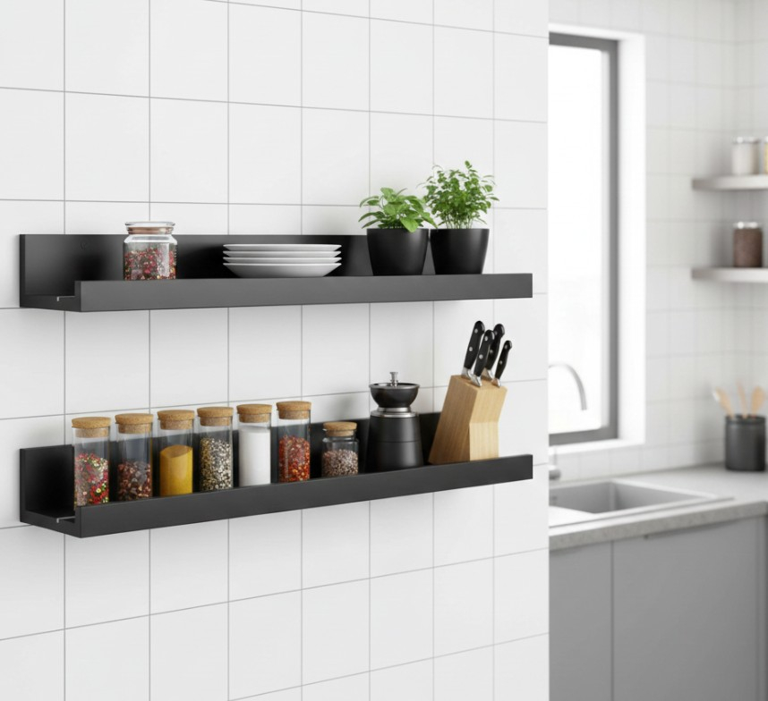 Politele sunt realizate din MDF rezistent, cu finisaj atent lucrat, fiind potrivite pentru utilizare zilnica. Designul simplu le face usor de integrat in diverse stiluri de amenajare, fie ca le folosesti in bucatarie pentru condimente, in living pentru decor sau in hol pentru obiecte uzuale.