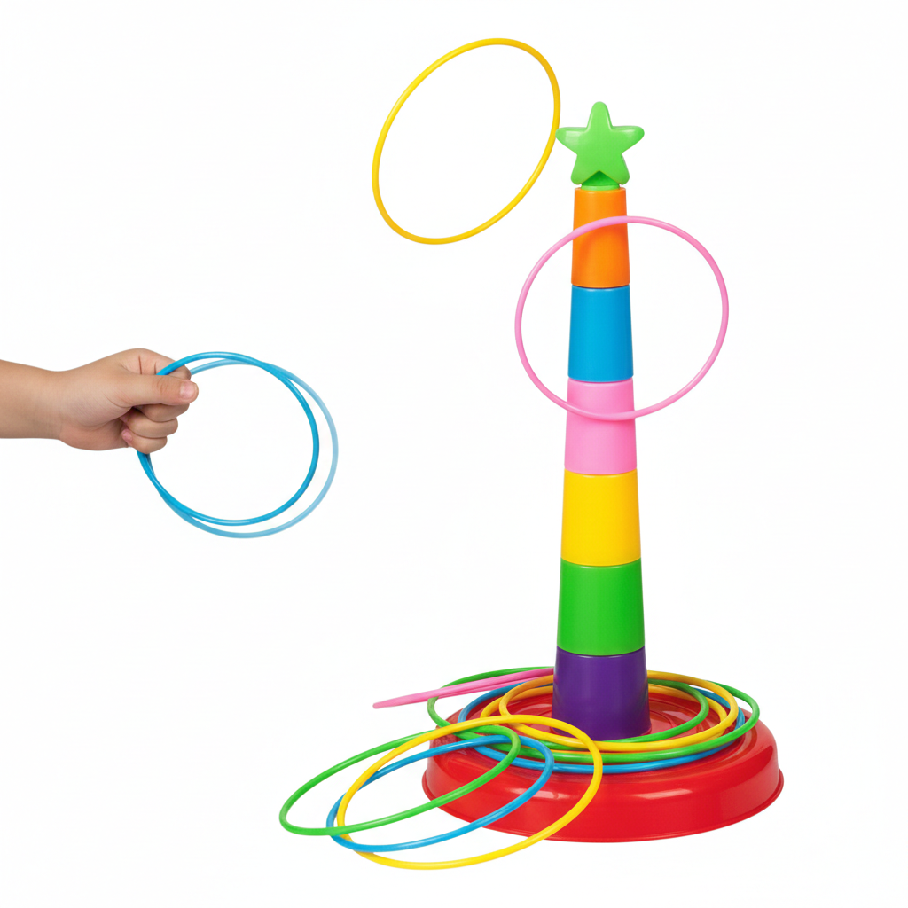 Joc de indemanare, arunca inelele pe turn, 35x18 cm