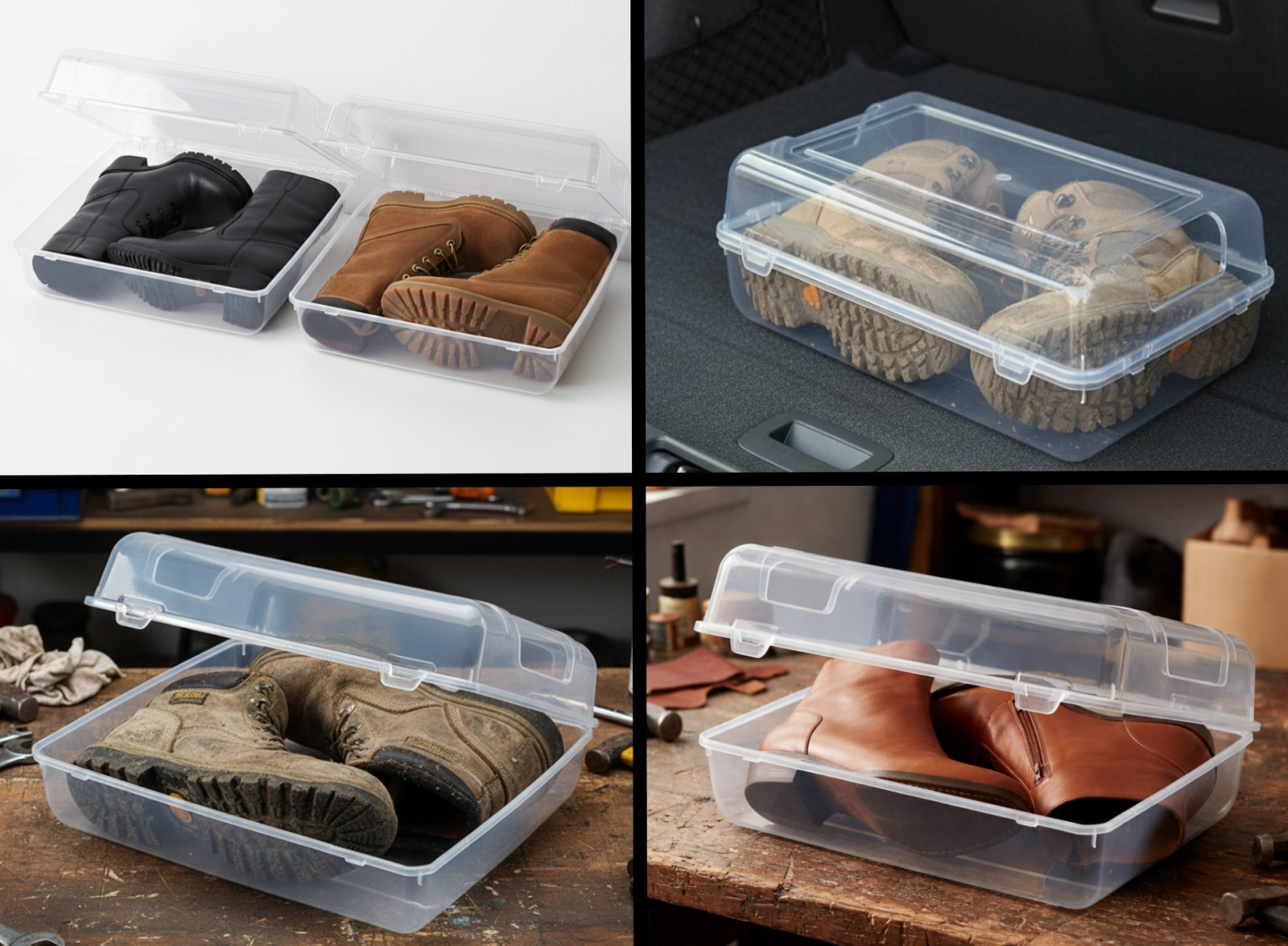 Ideale pentru depozitarea si transportul incaltamintei inalte, precum cizme sau bocanci, oferind protectie eficienta si organizare optima.