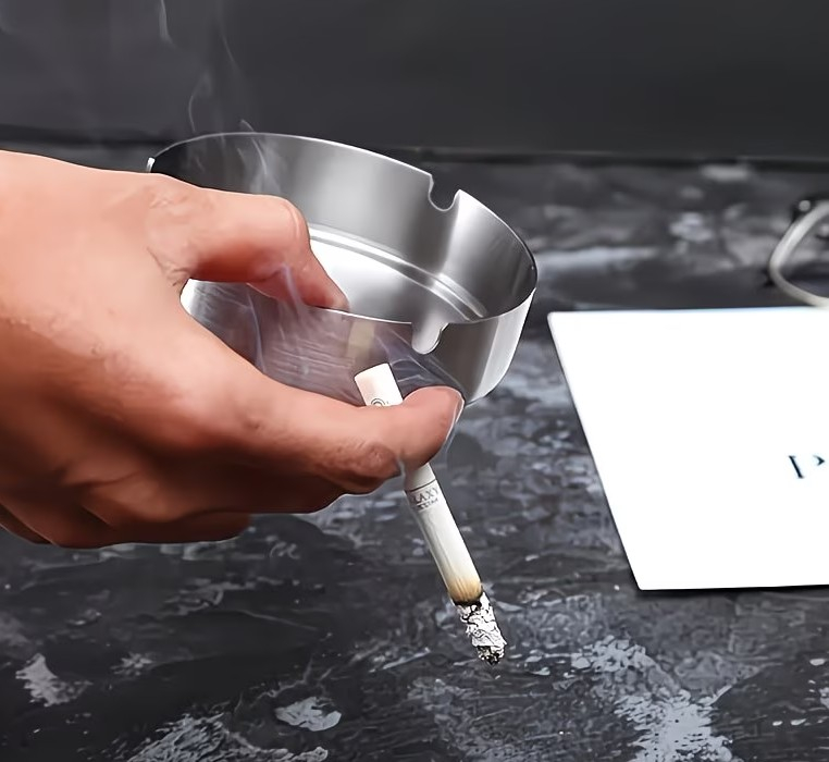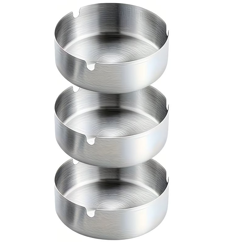 Set 3 buc scrumiera din Inox, rotunda, Ø8x4cm, pentru casa, terasa sau cafenea