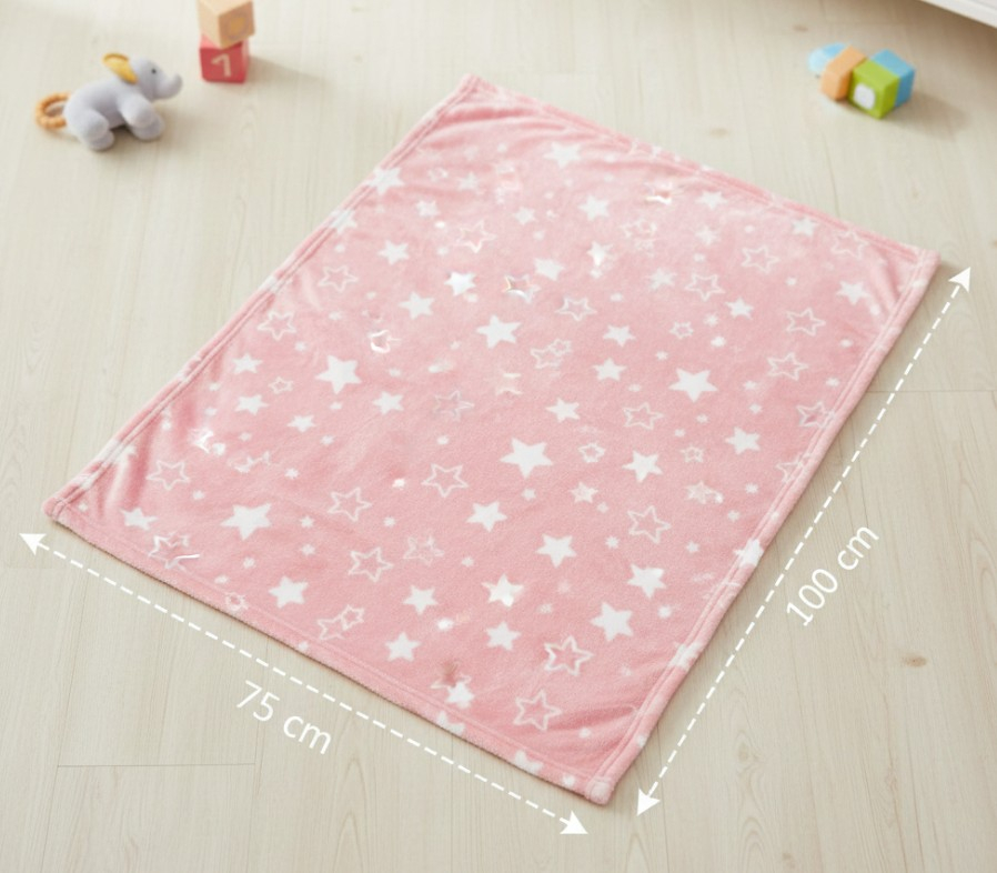 Designul in nuante de roz, cu stelute albe, creeaza un aspect placut si jucaus, fiind potrivita atat pentru somn, cat si pentru momentele de relaxare sau joaca.