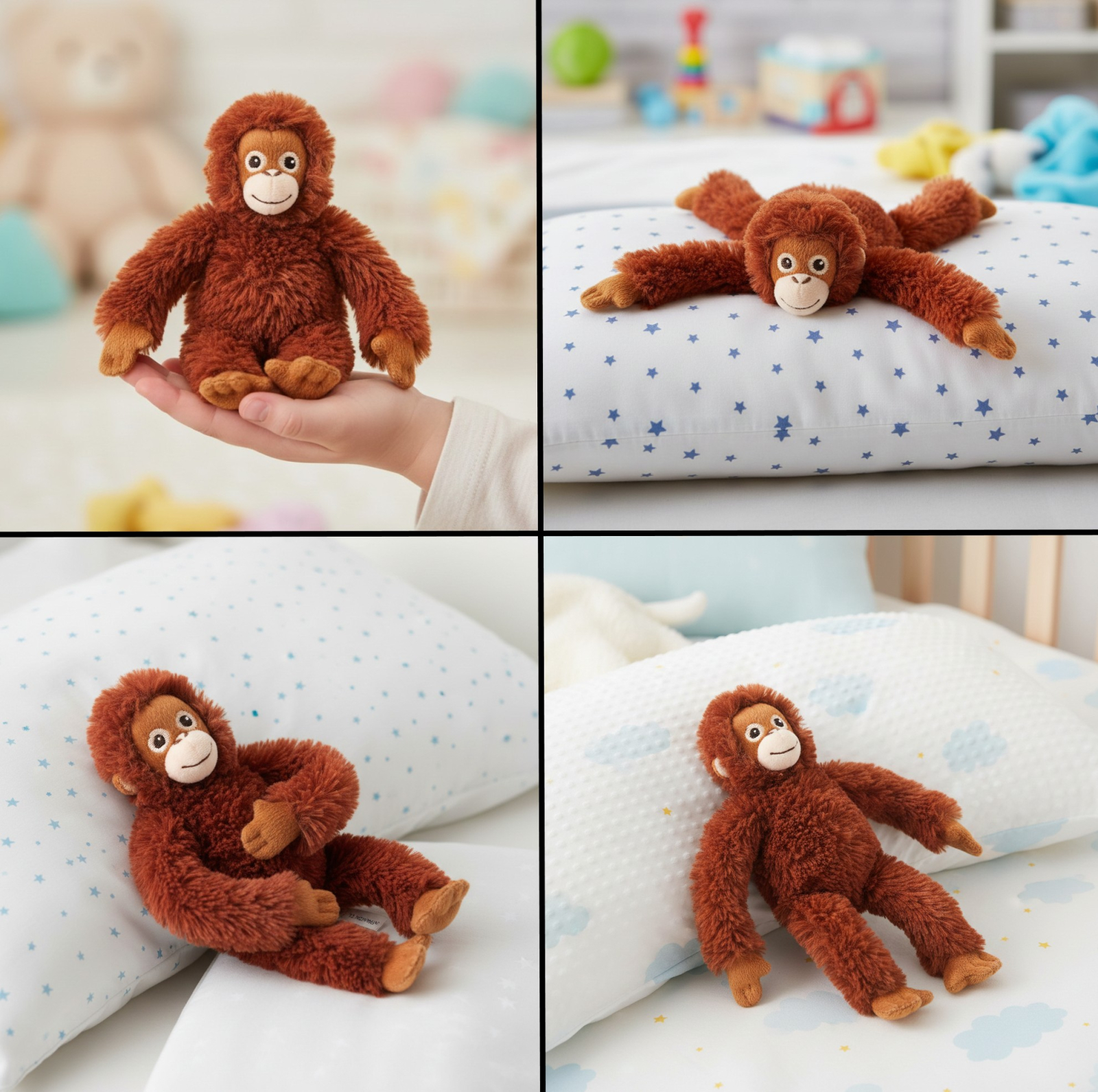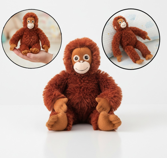 Aceasta maimutica de plus ofera confort si bucurie zilnica, devenind un prieten de nadejde pentru cei mici in momentele de joaca si relaxare.