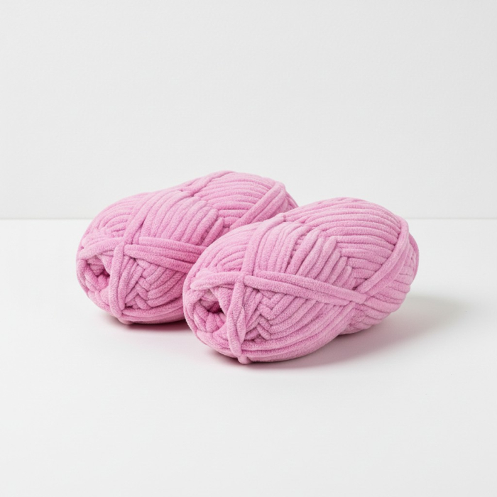 Set 2 buc ghem cu fir de tricotat moale si catifelat, roz, poliester, lungime 32 m/ghem