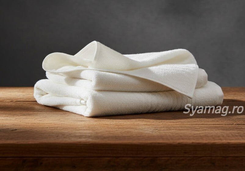 Ideale pentru utilizare zilnica in baie sau bucatarie. Materialul natural este moale, absorbant si placut la atingere, asigurand uscarea rapida a mainilor sau suprafetelor. Culoarea alba ofera un aspect curat si elegant, potrivit pentru orice stil de amenajare.