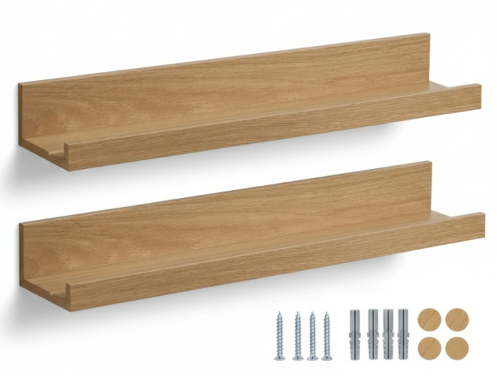 Set 2 polite perete din MDF, cu feronerie inclusa – montaj usor si organizare practica, aspect nature, 55x12 cm