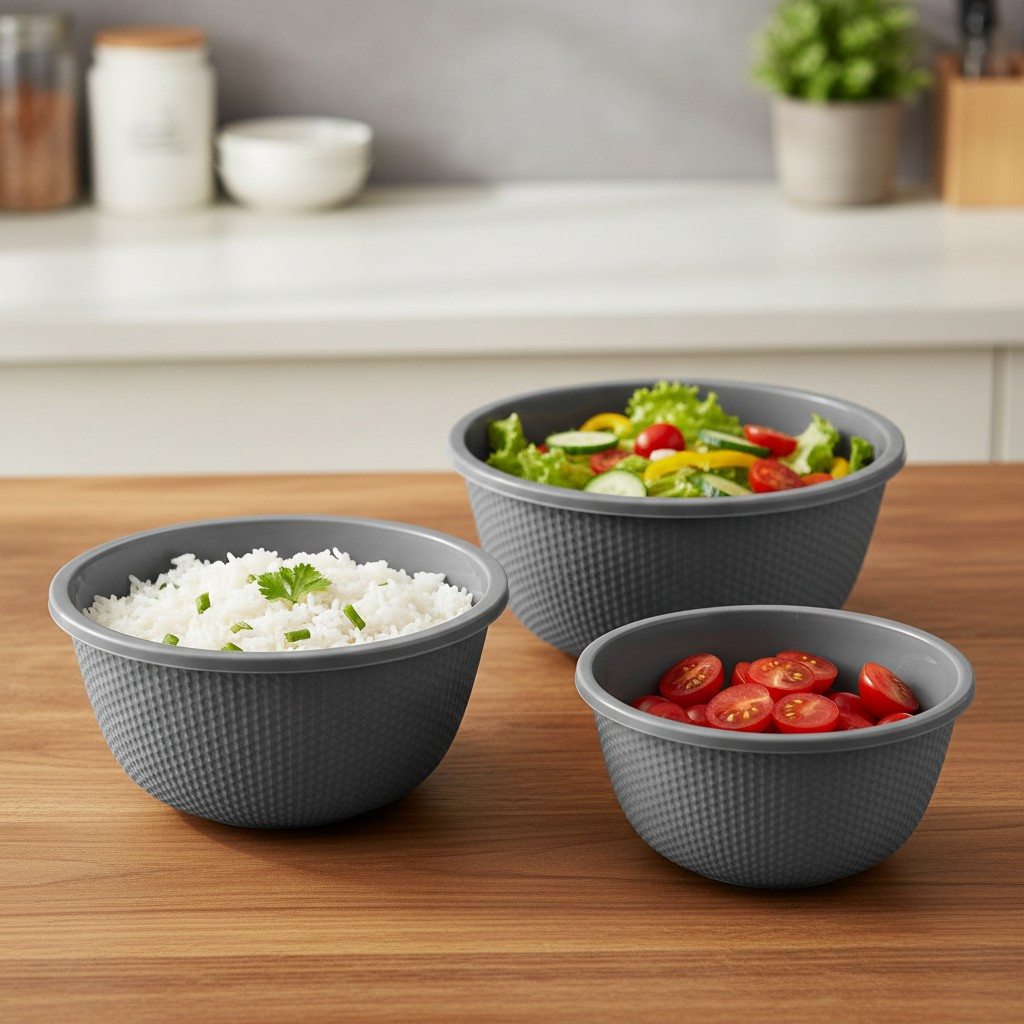 Setul include trei boluri cu capacitati de 0.5 litri, 1 litru si 2 litri.